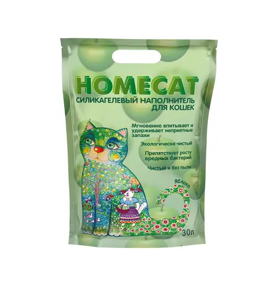 Современный силикагелевый наполнитель Homecat для прогрессивных владельцев домашних кошек устраняет причину неприятных запахов навсегда, придавая Вашему дому ощущения чистоты. Обладает мягкими для восприятия питомцами ароматами. Высокие впитывающие свойства силикагеля, поглощение запахов, бактерицидный эффект делает его очень удобным в применении. Экономичен в использовании, не требует ежедневной смены. Специальная форма гранул препятствует рассыпанию при копании. Не пылит. Можно использовать в кошачьих лотках с решеткой. Мгновенно поглощает жидкость и запахи, благодаря своим адсорбирующим свойствам, блокируя их навсегда, сохраняя свою первоначальную форму.