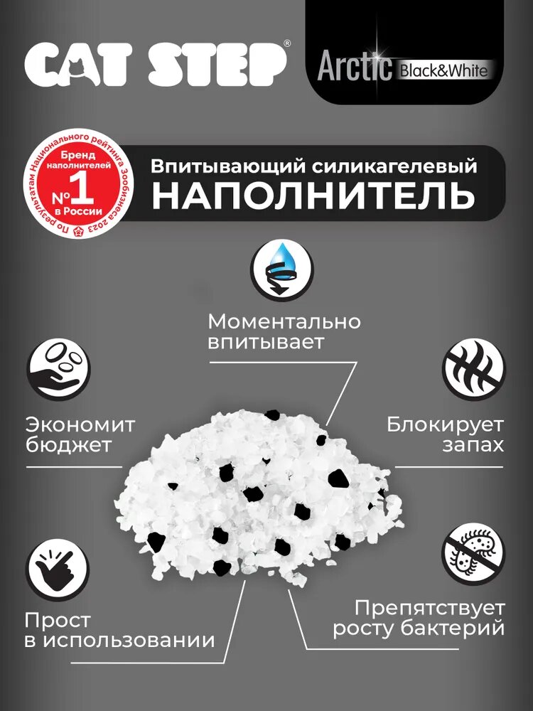 Купить Наполнитель для кошачьего туалета впитывающий силикагелевый CAT STEP Arctic Black&White, 3.8 л с доставкой по всей России.