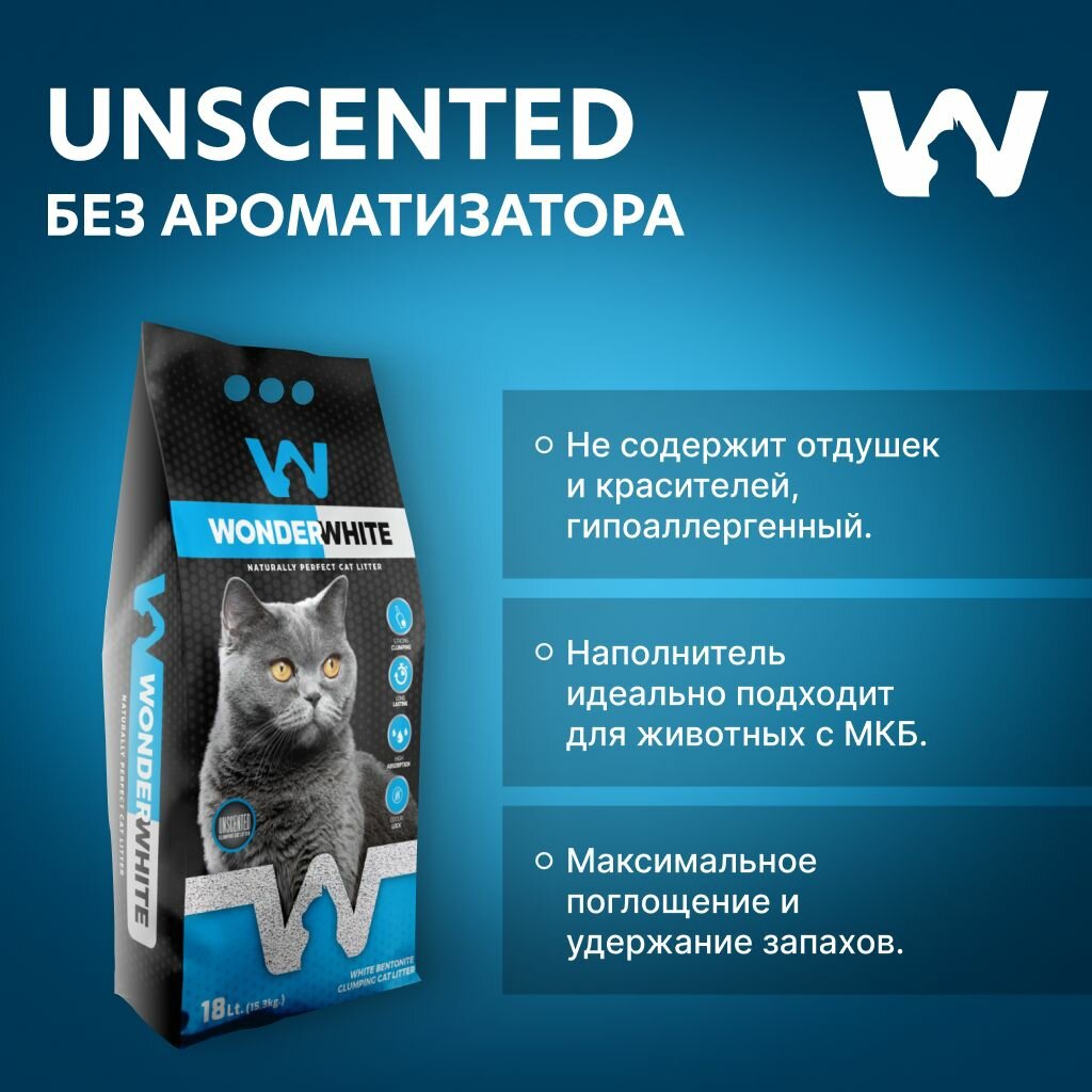 Купить Вандер Вайт Unscented Natural Наполнитель комкующийся без ароматизатора 15,3кг с доставкой по всей России.