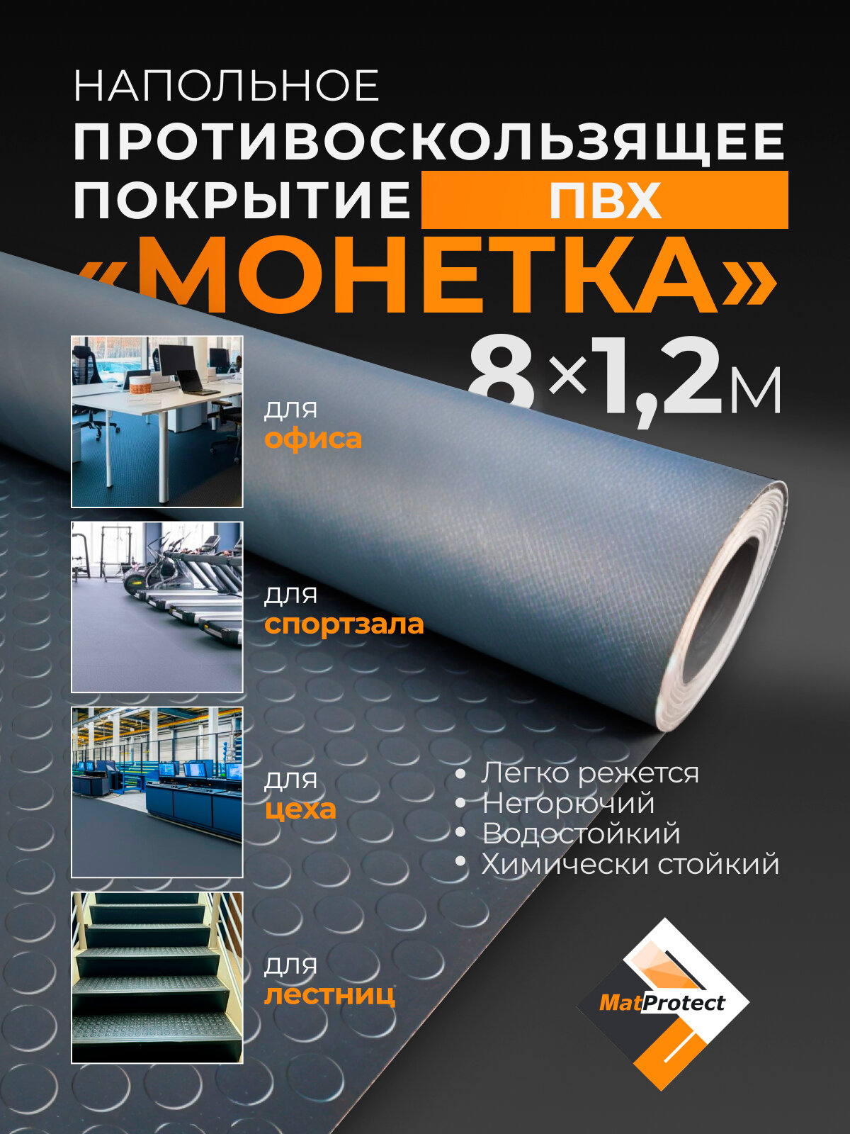 Купить Напольное противоскользящее покрытие MatProtect «Монетка», L 8 м, ширина 1.2 м, серый, ПВХ с доставкой по всей России. Напольное противоскользящее покрытие MatProtect «Монетка», L 8 м, ширина 1.2 м, серый, ПВХ: сравнение цен, характеристики, фото, актуальное наличие и цены.