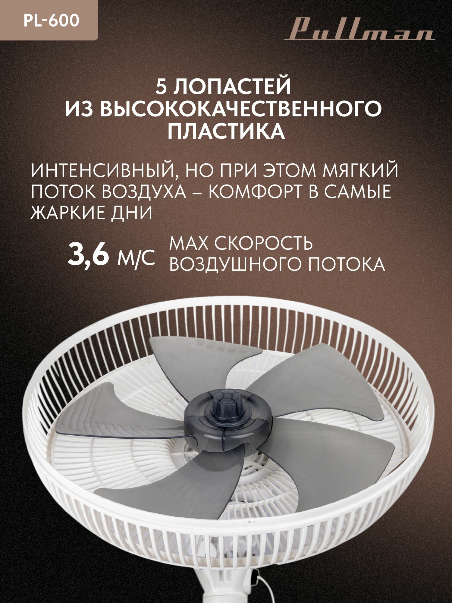 Напольный и настольный вентилятор 2 в 1 PULLMAN PL-600, электрический, мощность 60 Вт, 4 скорости, стильный дизайн, белый: сравнение цен, характеристики, фото, актуальное наличие и цены.