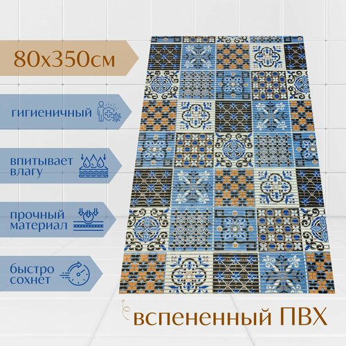 Напольный коврик для ванной из вспененного ПВХ 80×350 см, коричневый/голубой/белый, с рисунком: сравнение цен, характеристики, фото, актуальное наличие и цены.