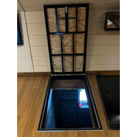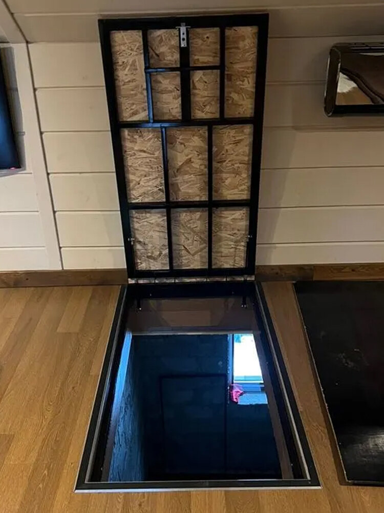 Особенности конструкции: невидимка, одностворчатый, с амортизаторами, с уплотнителем с 3-х сторон, петли по узкой стороне, самоподъемный, скрытый монтаж. Обеспечивает доступ к инженерным коммуникациям в полу (а также подвалам и погребам).
