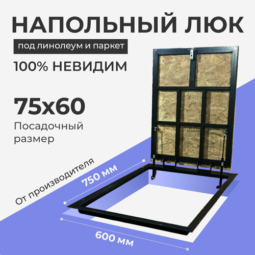 Напольный люк под линолеум/паркет 750х600 самоподъемный невидимый с газовыми амортизаторами, петли по узкой стороне: сравнение цен, характеристики, фото, актуальное наличие и цены.