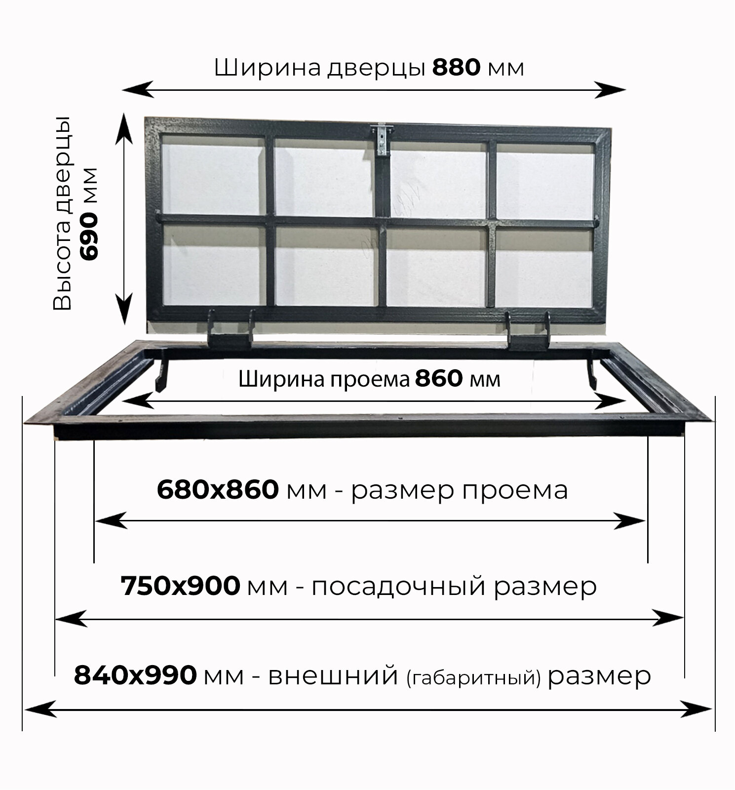 Размер проема в свету ширина, мм: 860;
