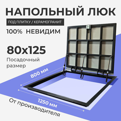 Особенности конструкции: невидимка, одностворчатый, с амортизаторами, с уплотнителем с 3-х сторон, петли по длинной стороне, самоподъемный, скрытый монтаж. Обеспечивает доступ к инженерным коммуникациям в полу (а также подвалам и погребам).