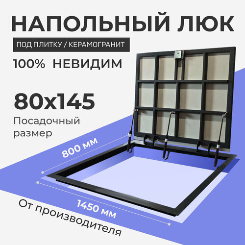 Особенности конструкции: невидимка, одностворчатый, с амортизаторами, с уплотнителем с 3-х сторон, петли по длинной стороне, самоподъемный, скрытый монтаж. Обеспечивает доступ к инженерным коммуникациям в полу (а также подвалам и погребам).