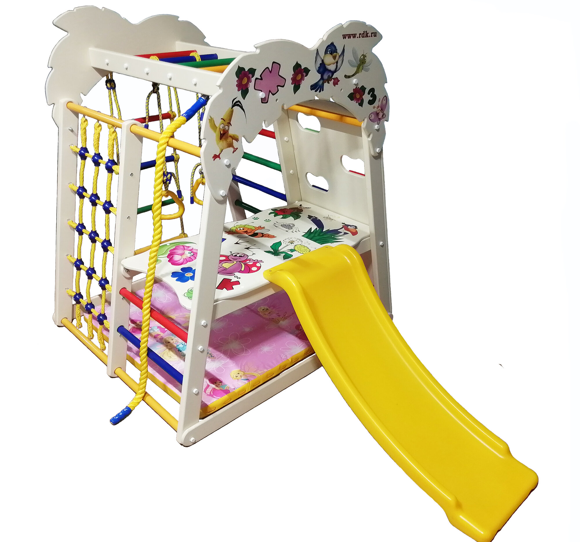 Горка, Шведская стенка наклонная, Мат гимнастический, Канат, Кольца гимнастические, Сетка для лазания.