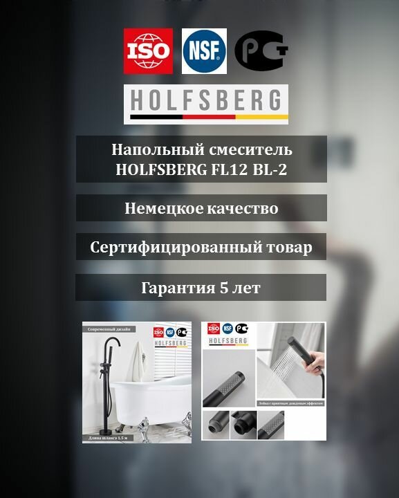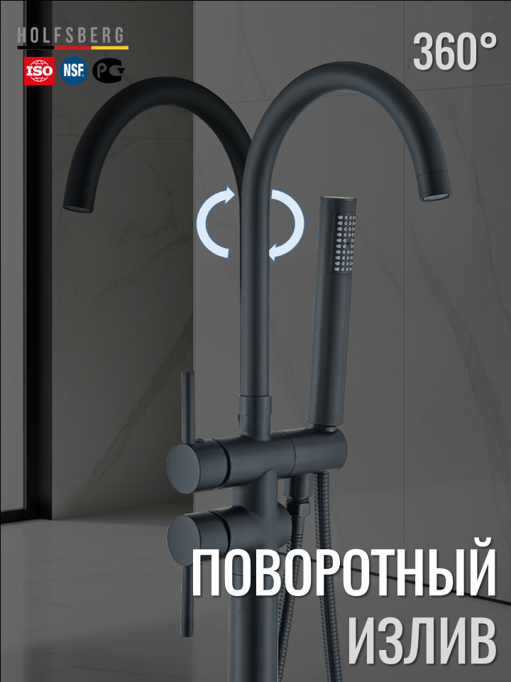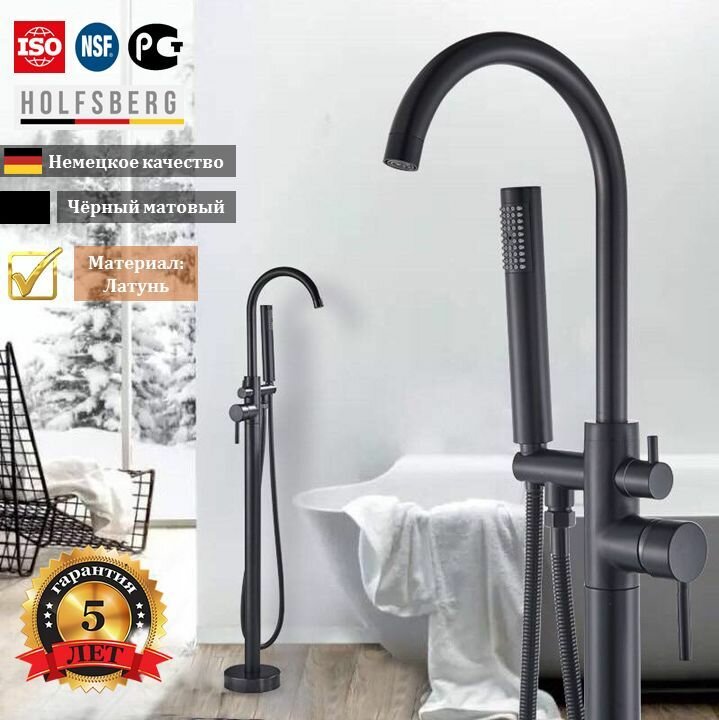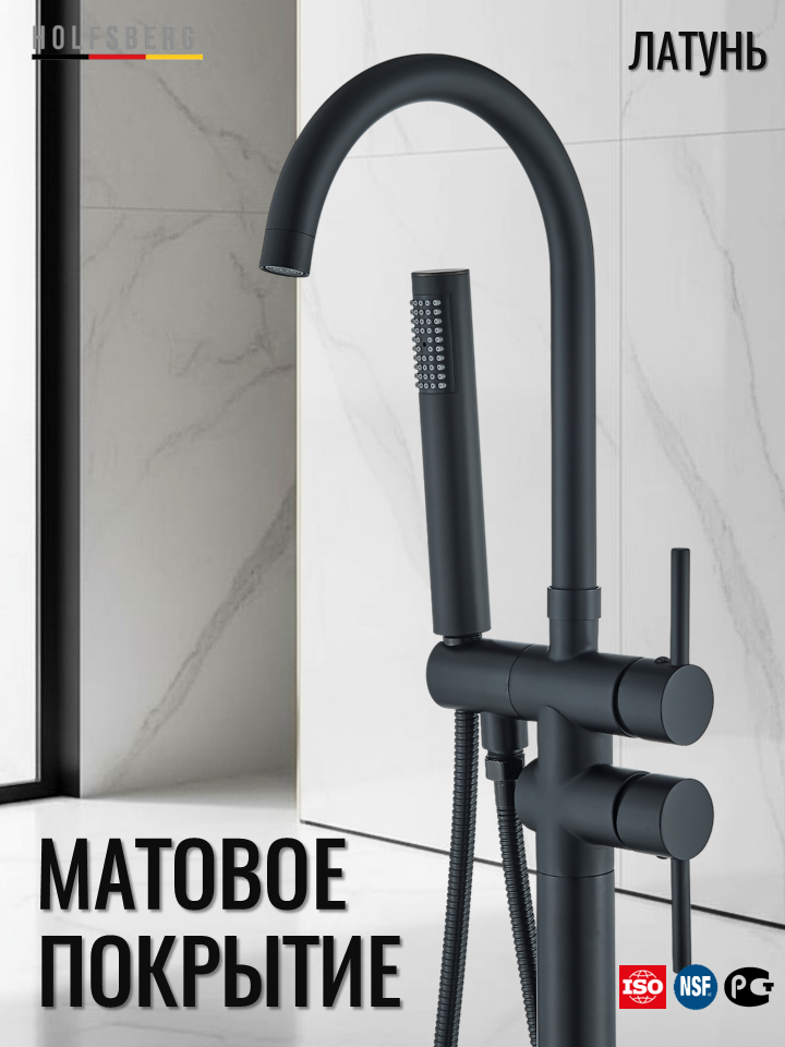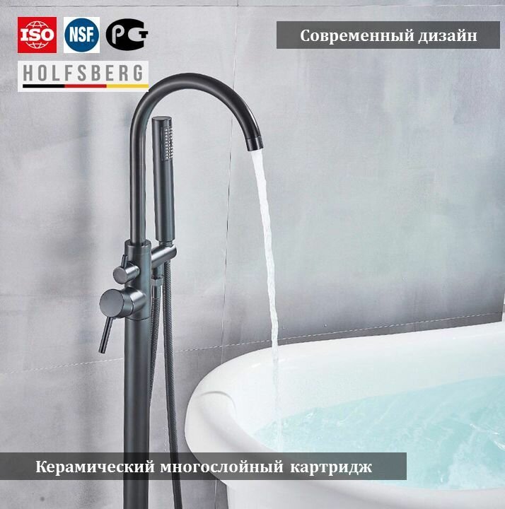 | Комплектация | - смеситель; - лейка душа; - подставка напольного смесителя; - душевой шланг; - паспорт |