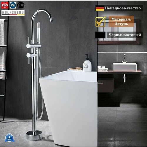 Купить Напольный смеситель для ванны HOLFSBERG F-12. Смеситель для отдельно стоящей ванной с доставкой по всей России.