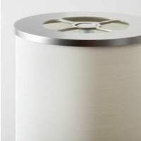 Светильник имеет металлический каркас и тканевый абажур белого цвета. Он подходит для использования в детской комнате, так как изготовлен из безопасных материалов.