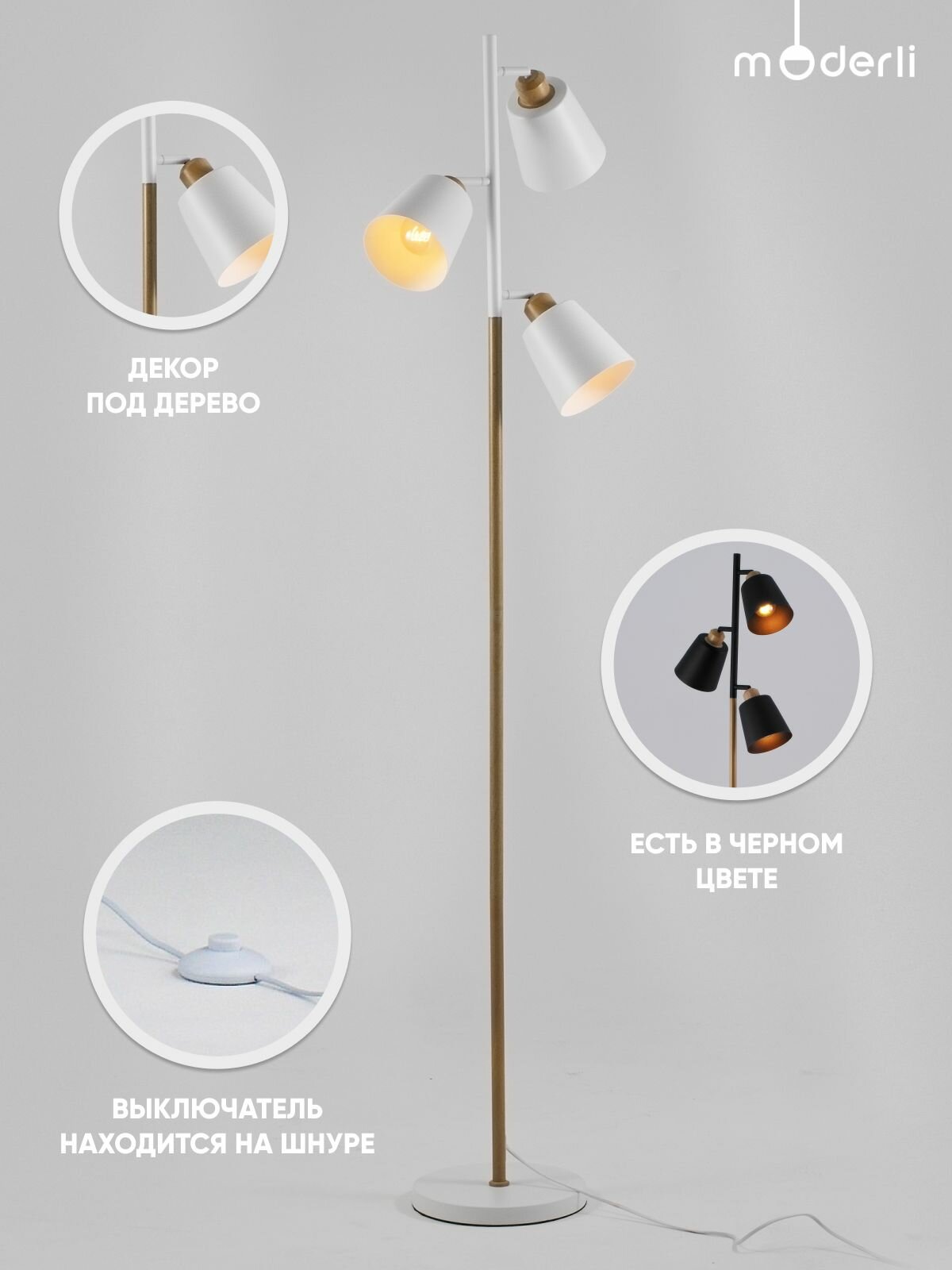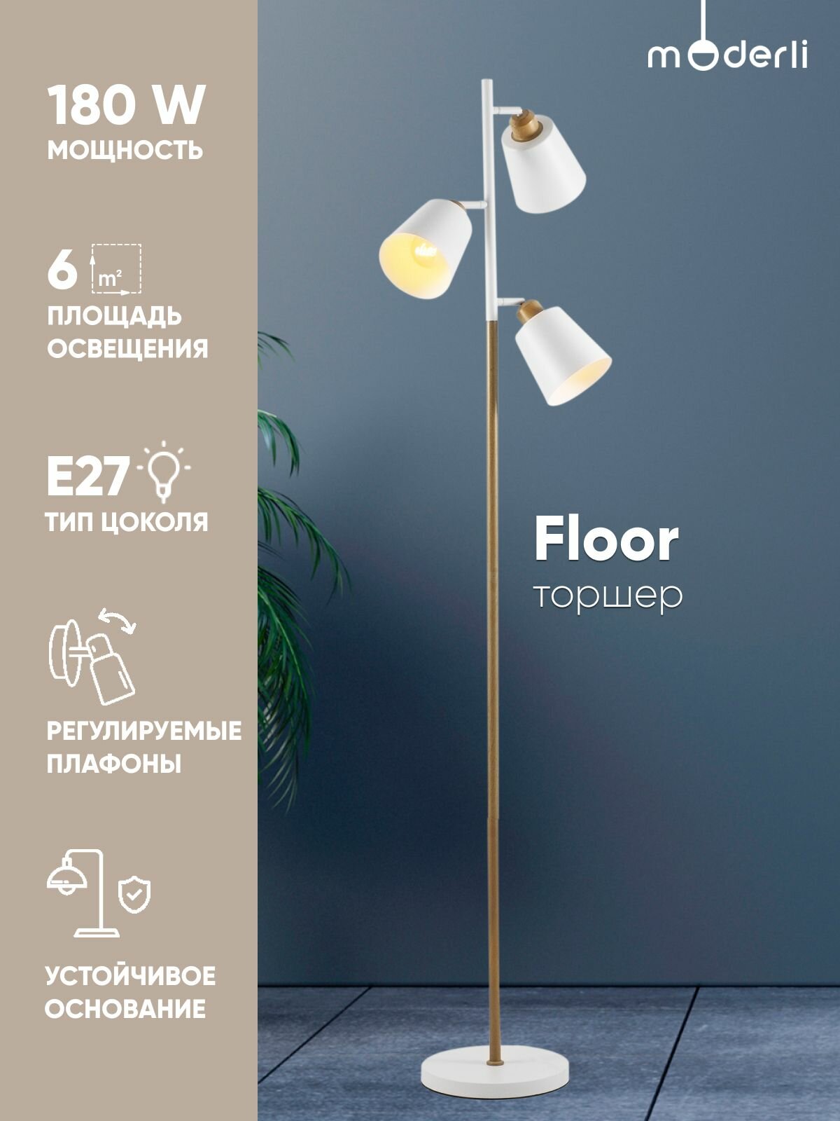 Напольный светильник торшер Moderli V3050-3F Floor 3*E27*60W песочный белый, коричневое дерево: сравнение цен, характеристики, фото, актуальное наличие и цены.