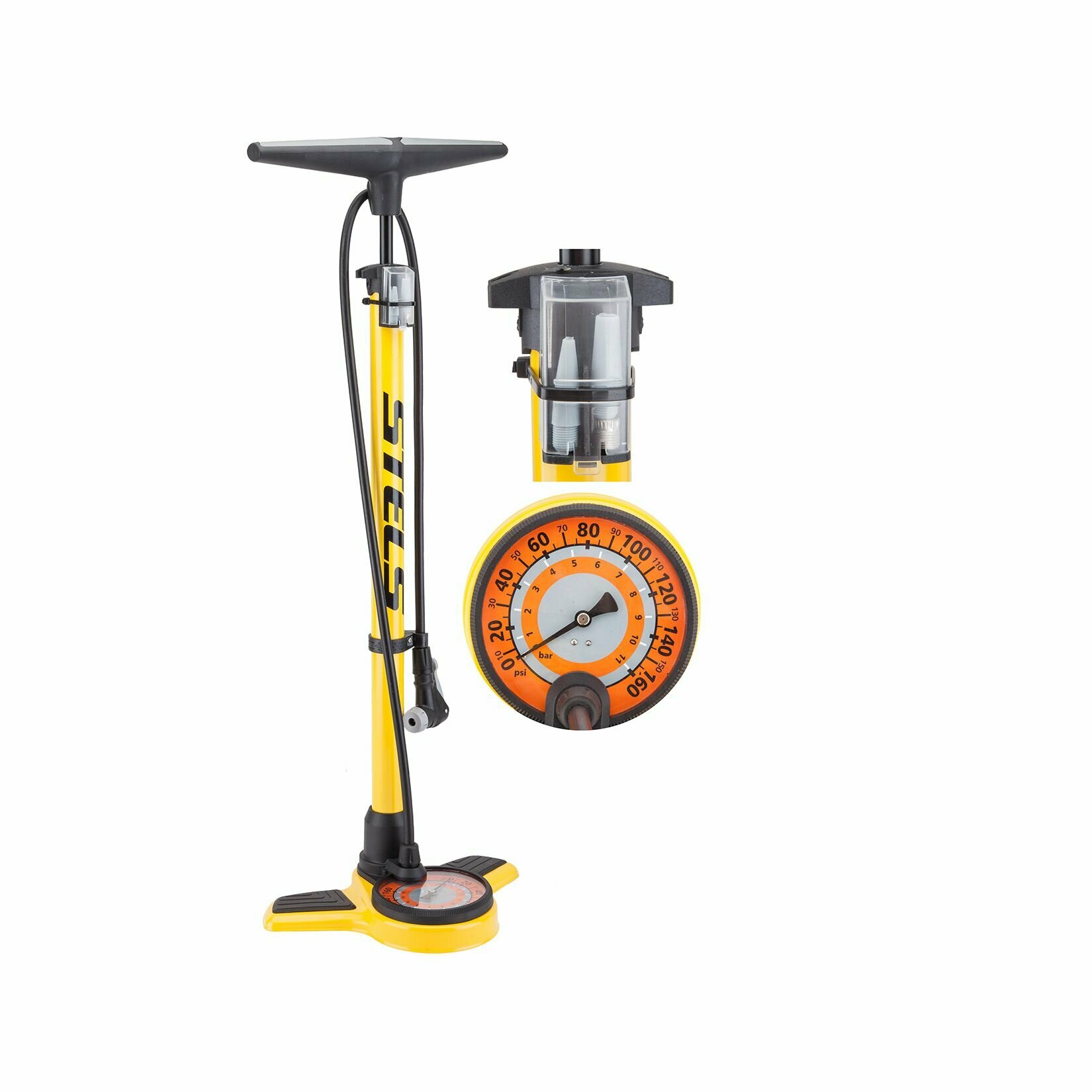 Насос напольный ручной STELS P32B-07, 32×610 мм, с манометром, автовентиль/presta, доп. насадки, арт. 320055: сравнение цен, характеристики, фото, актуальное наличие и цены.