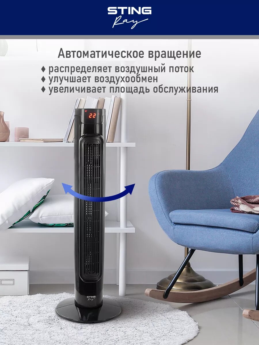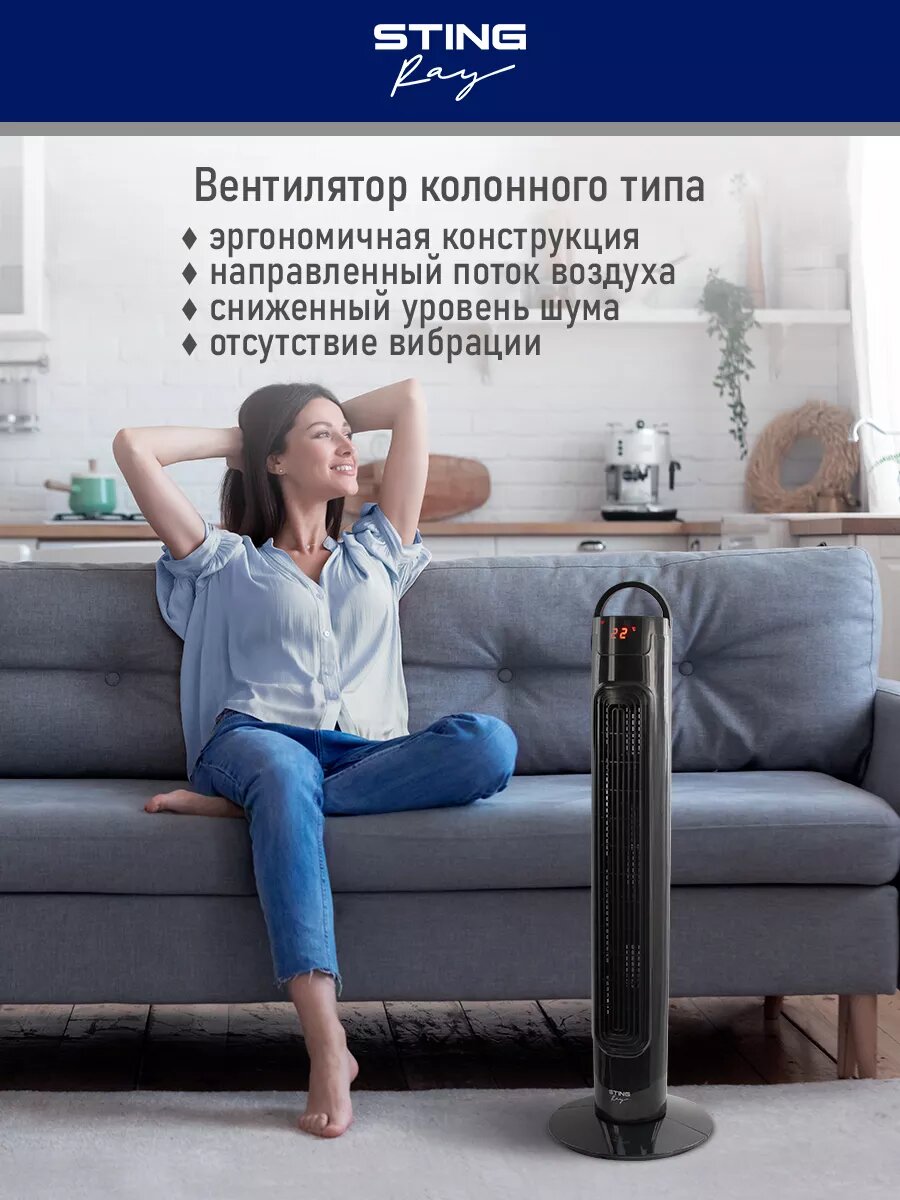 Купить Напольный вентилятор колонного типа с LED дисплеем и пультом ДУ STINGRAY ST-FN4104B черный жемчуг с доставкой по всей России.