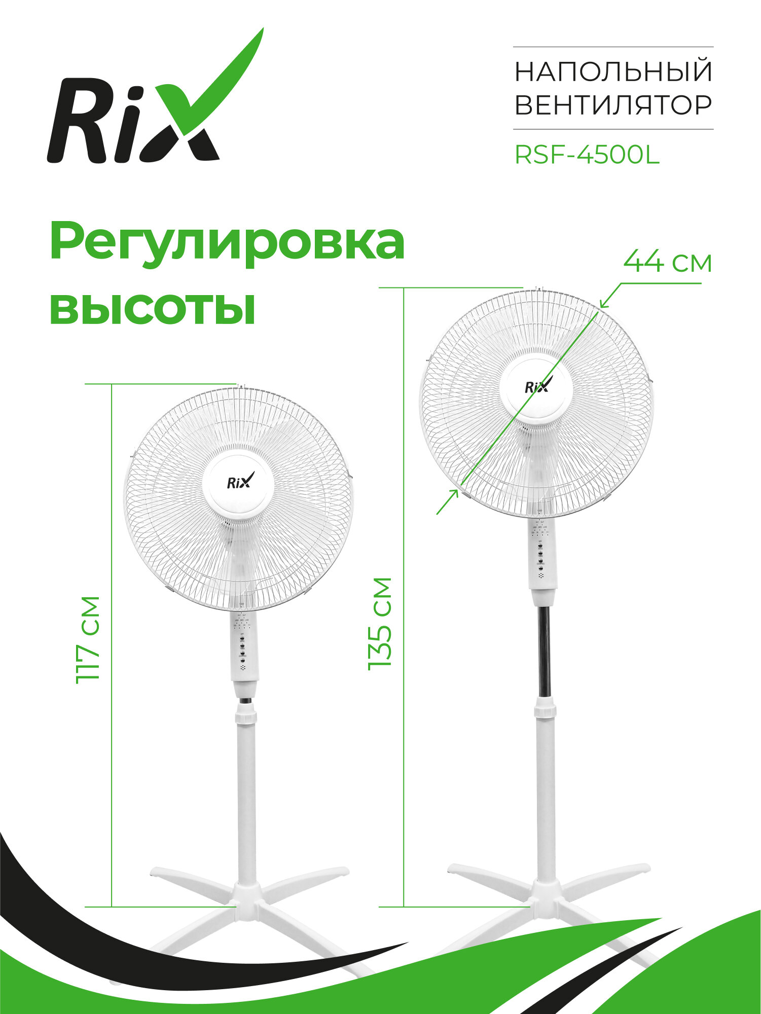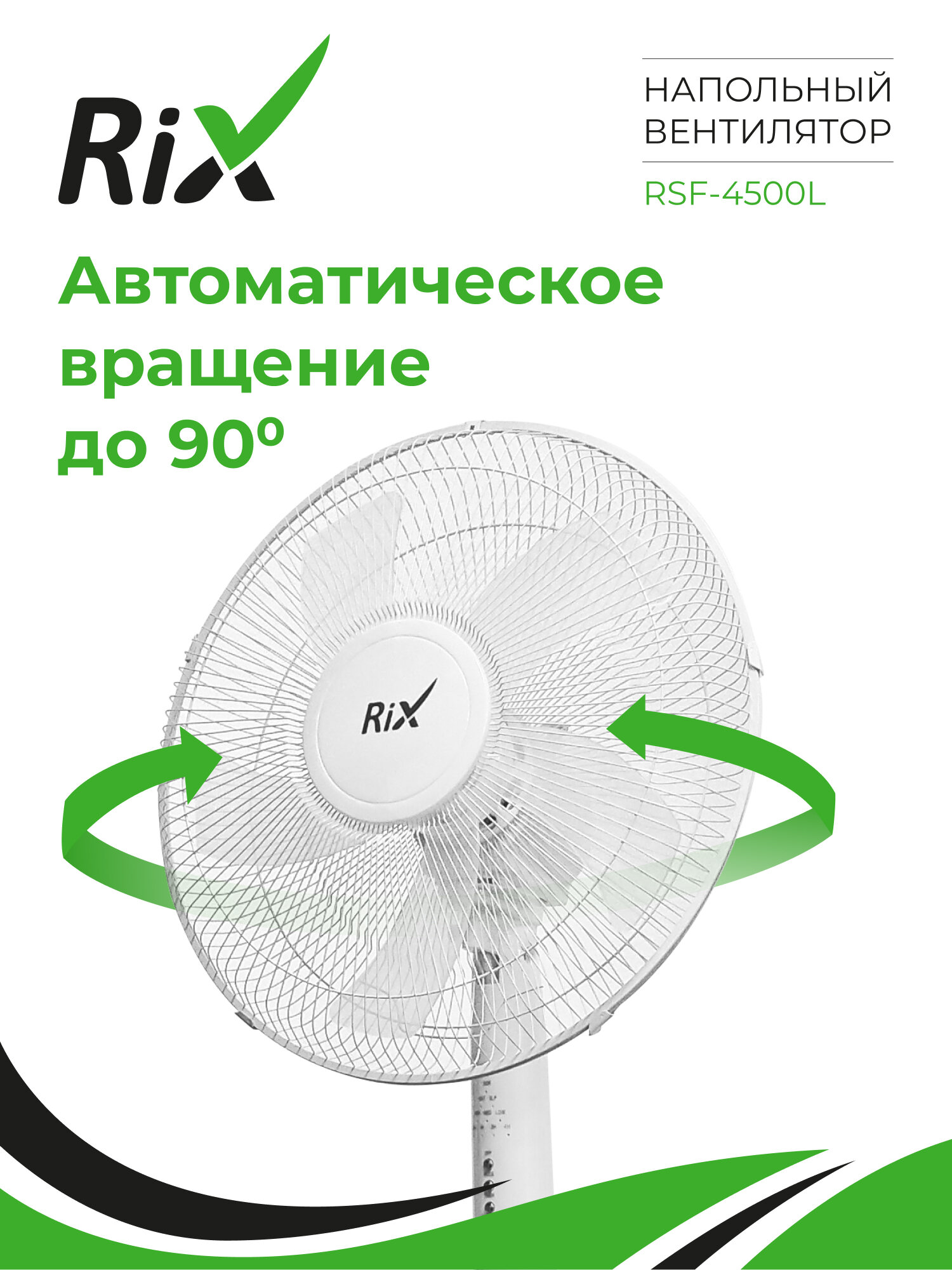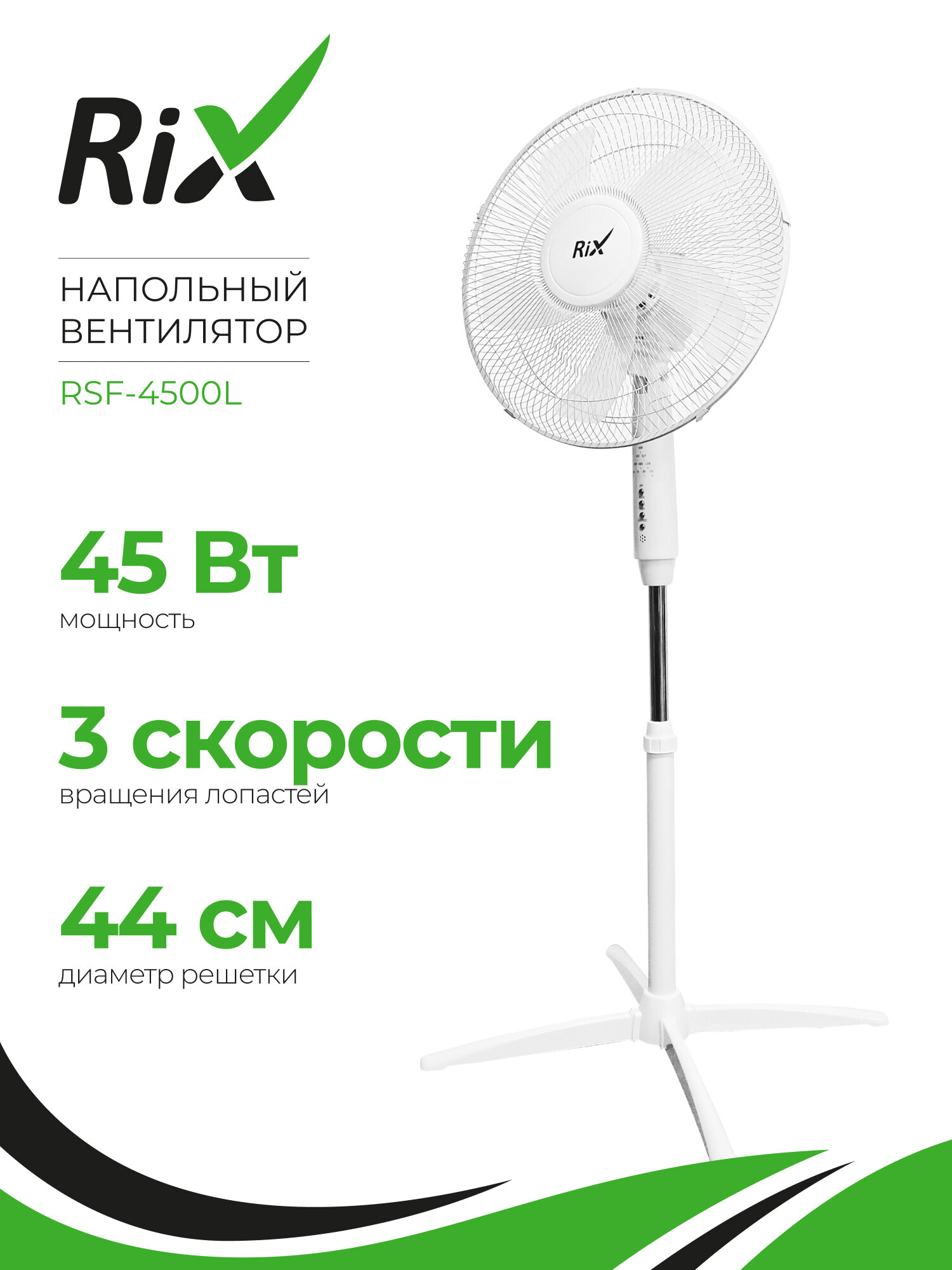 Купить Напольный вентилятор Rix RSF-4500L, пульт ДУ, 45Вт, 3 скорости, диаметр лопастей 36см с доставкой по всей России.