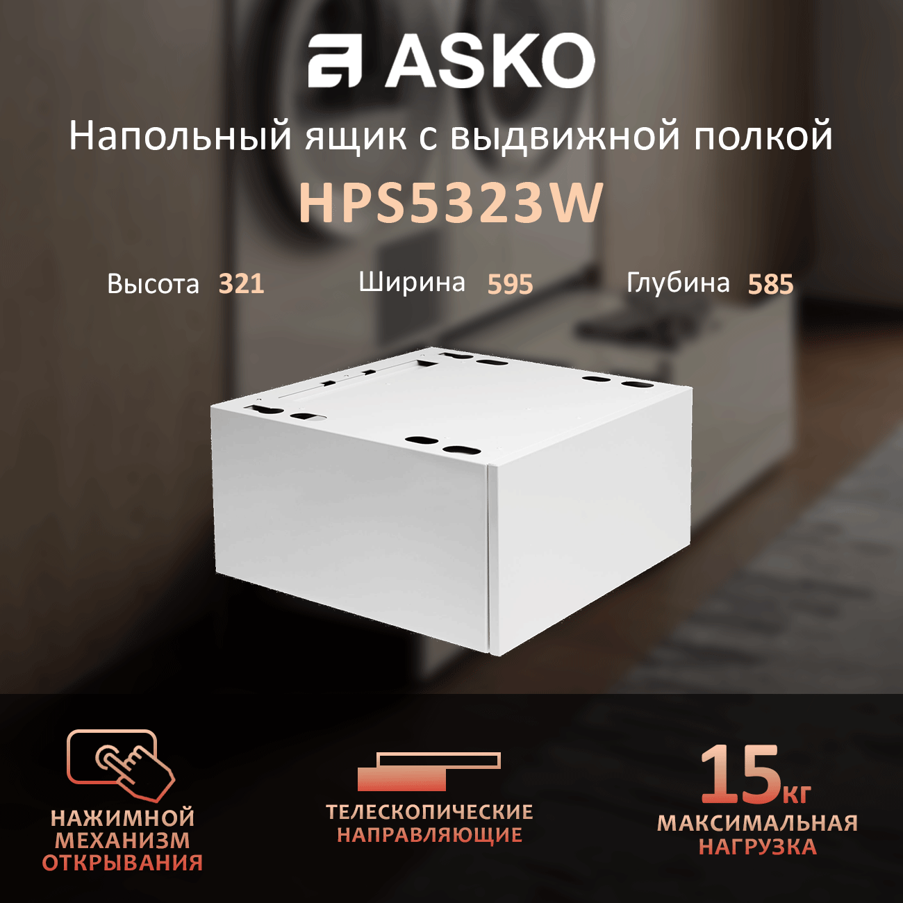 Напольный ящик с выдвижной полкой Asko HPS5323W устанавливается под стиральную или сушильную машину.