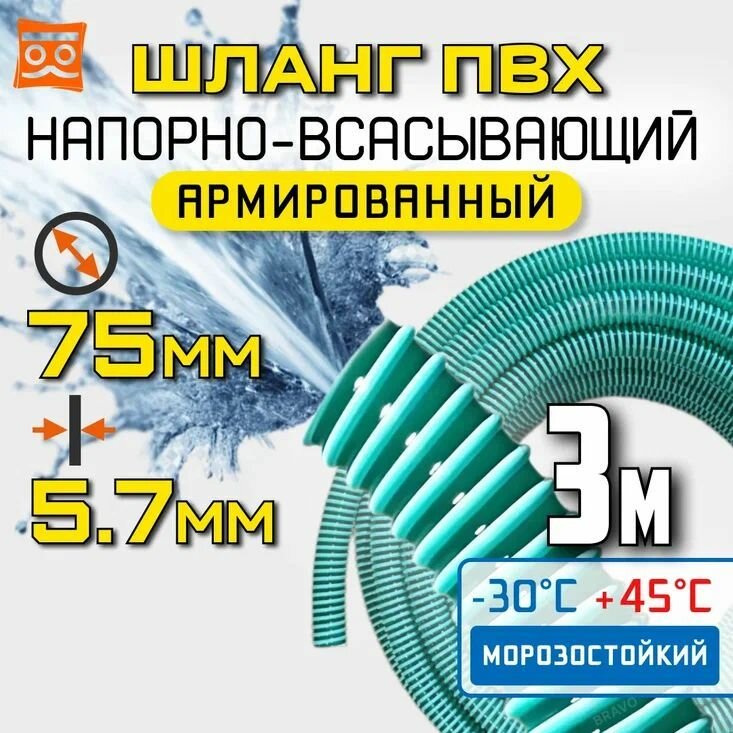 Купить Напорно всасывающий шланг для дренажного насоса 75мм, 3 метра , ПВХ, армированный, морозостойкий с доставкой по всей России. Напорно всасывающий шланг для дренажного насоса 75мм, 3 метра , ПВХ, армированный, морозостойкий: сравнение цен, характеристики, фото, актуальное наличие и цены.