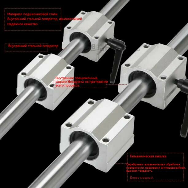 Изготовленная из алюминиевого сплава и хромированной стали, направляющая обладает высокой прочностью и долговечностью. Твердая стальная ось 45# с хромированным покрытием на поверхности обеспечивает устойчивость к коррозии и износу.