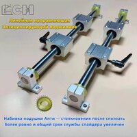 В комплект входят 2 линейных направляющих, 2 обычных и 2 запираемых подшипника, 4 кронштейна и 4 прокладки подушки. Это позволяет настроить направляющую под индивидуальные потребности и обеспечивает максимальную гибкость в использовании.