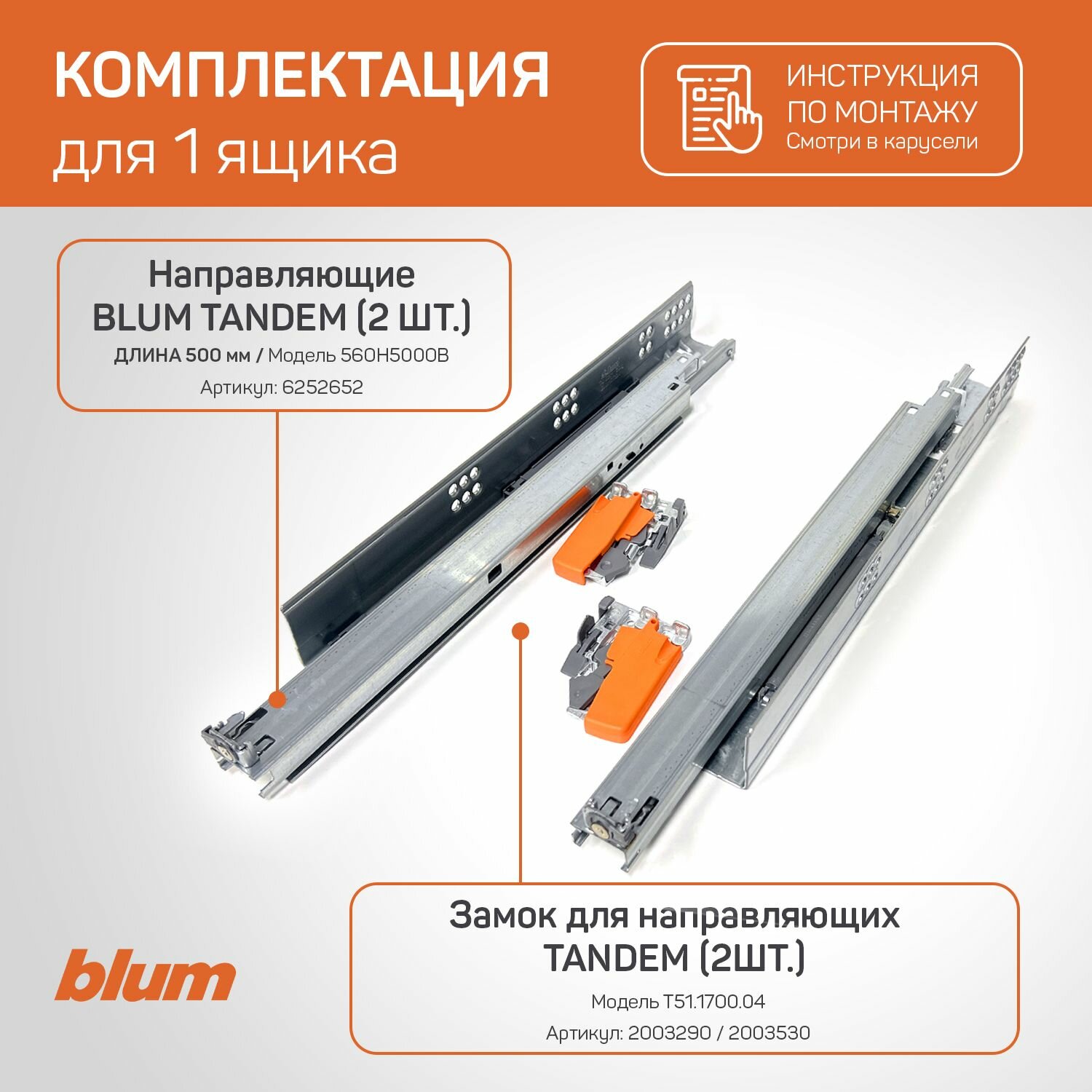 Направляющие для ящика с доводчиком BLUM TANDEM 500 мм 560H5000B . Комплект скрытого монтажа. (Арт.06252652): сравнение цен, характеристики, фото, актуальное наличие и цены.