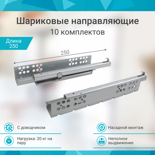 Купить Направляющие шариковые 250 мм с доводчиком 10 комплектов с доставкой по всей России. Направляющие шариковые 250 мм с доводчиком 10 комплектов: сравнение цен, характеристики, фото, актуальное наличие и цены.