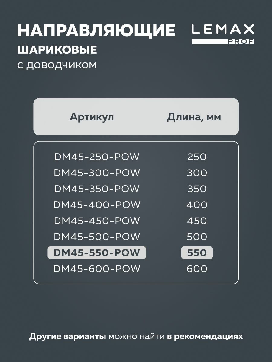 Направляющие шариковые полного выдвижения push-to-open Lemax Prof 550 мм / Комплект фурнитуры для выдвижных ящиков корпусной мебели: сравнение цен, характеристики, фото, актуальное наличие и цены.