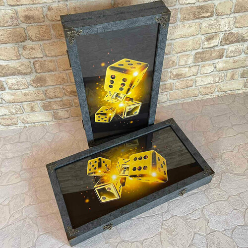 Нарды большие стеклянные "Огненные Зарики" с усиленными углами. Нарды большие деревянные 60 на 60 обтянутые качественной экокожей премиум класса и с двойным каленым стеклянным игровым полем, очень прочное.