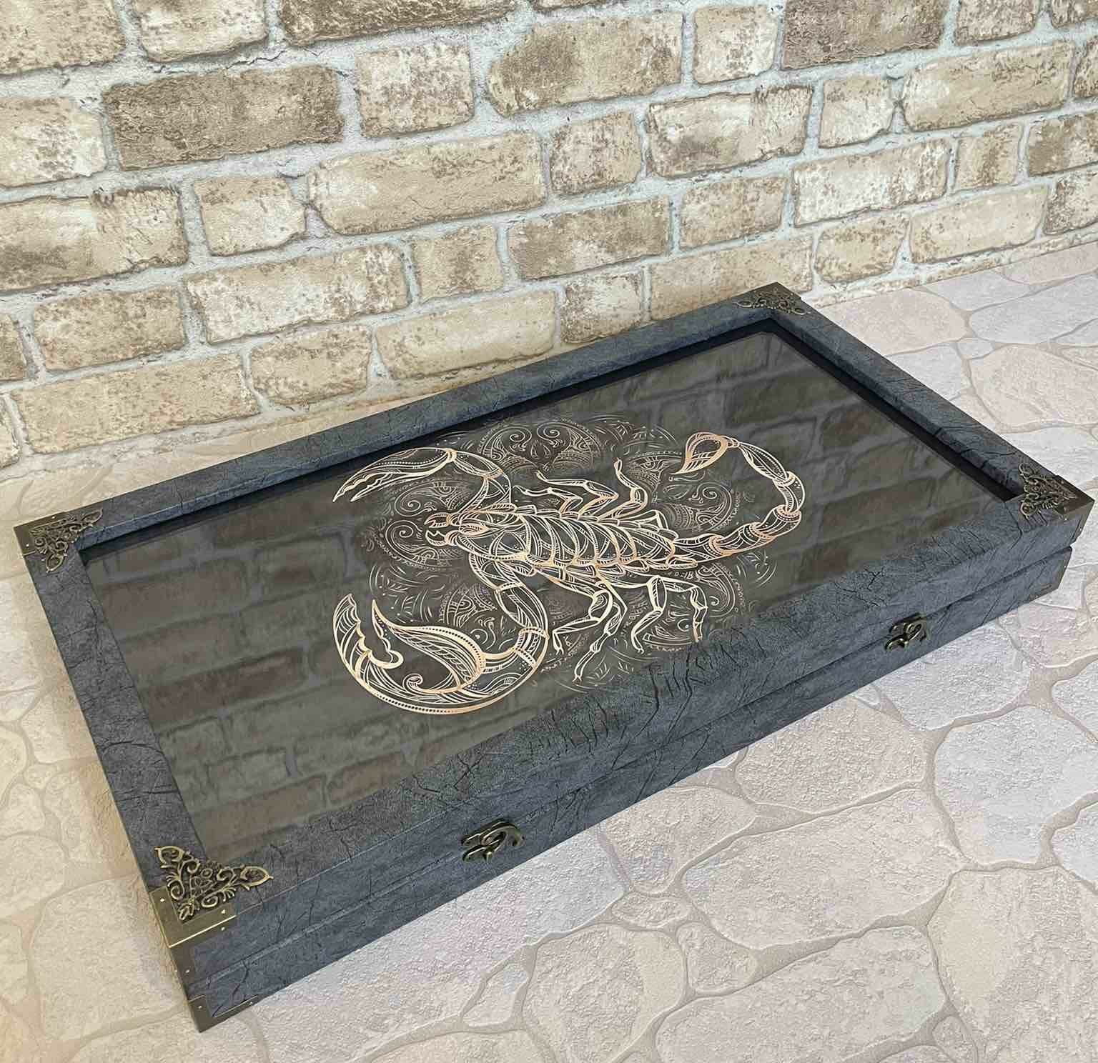 Нарды большие стеклянные "Скорпион" - это идеальный выбор для тех, кто ценит качество, стиль и оригинальность. Станут прекрасным подарком для друзей, коллег, родным и близким на любой случай жизни. Эти эксклюзивные нарды добавят изысканности в вашу коллекцию игр.