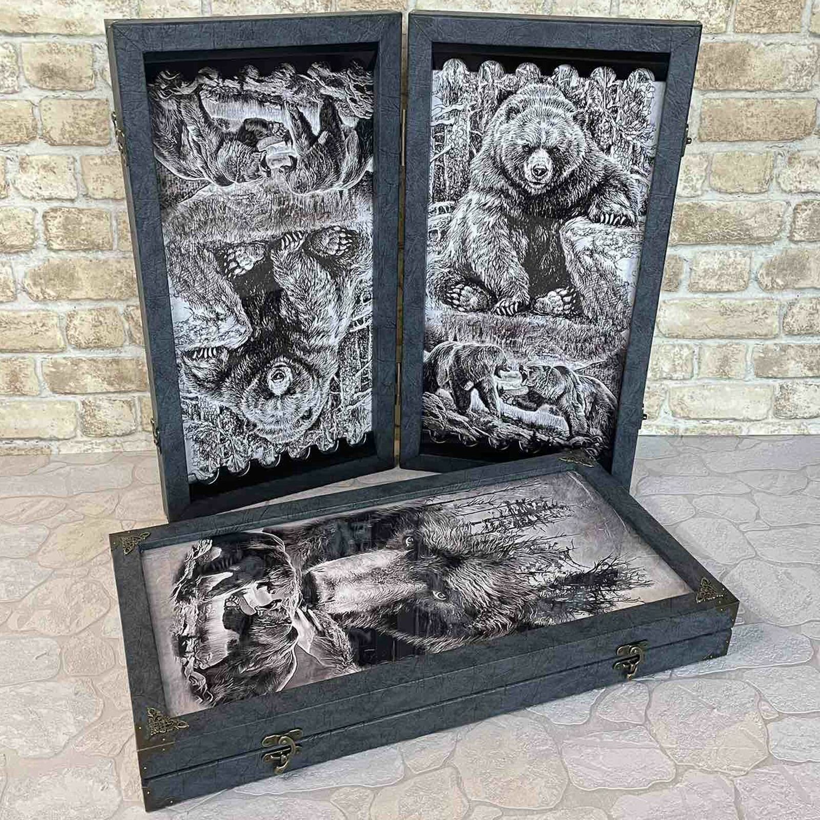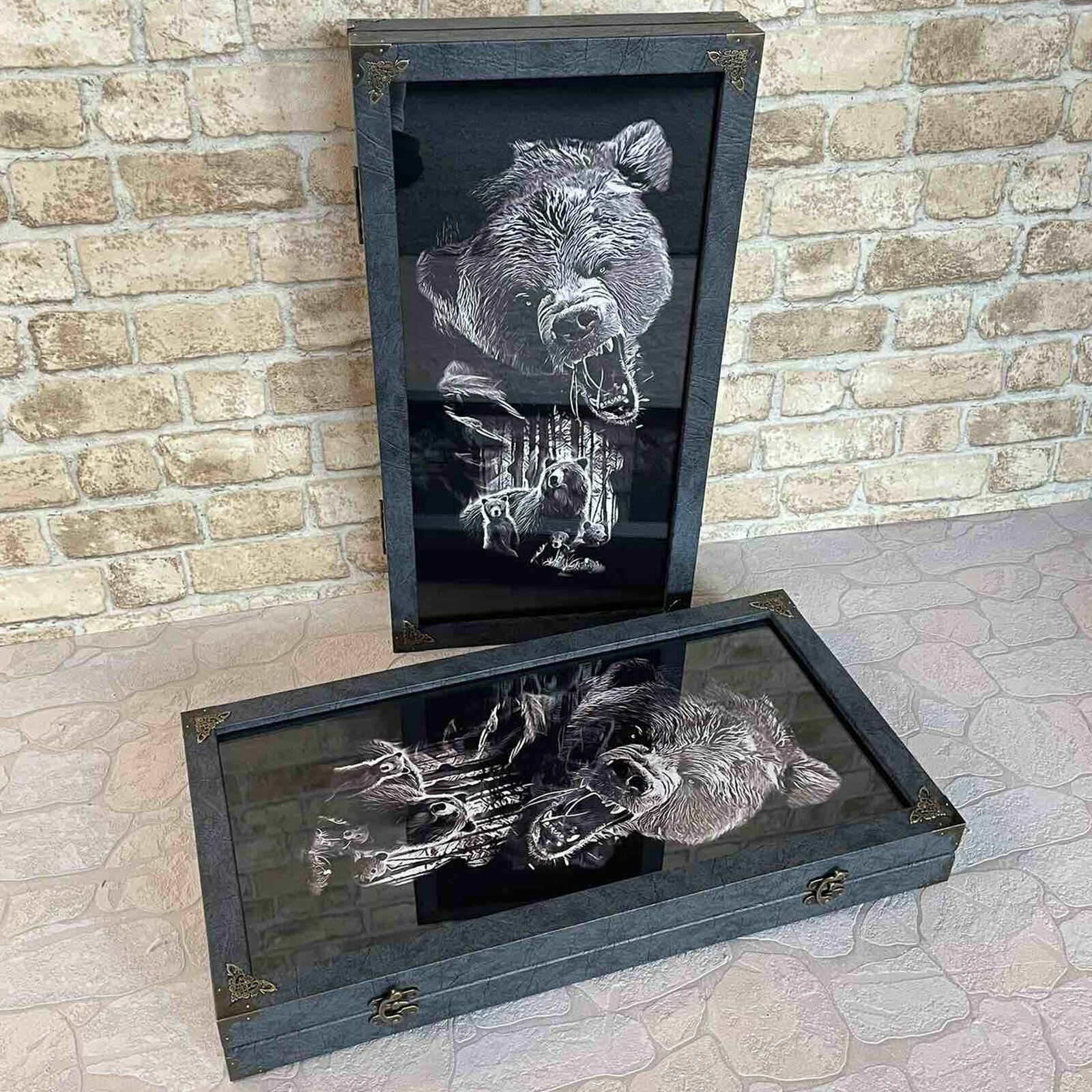 Большие стеклянные нарды "Яростный Медведь" имеют превосходный, современный вид. Являются результатом ручной работы мастеров, которые уделяют особое внимание каждой детали. Именно поэтому они не только служат функциональным предметом для игры, но и становятся уникальным элементом интерьера. Отлично подойдут для семьи и компании.