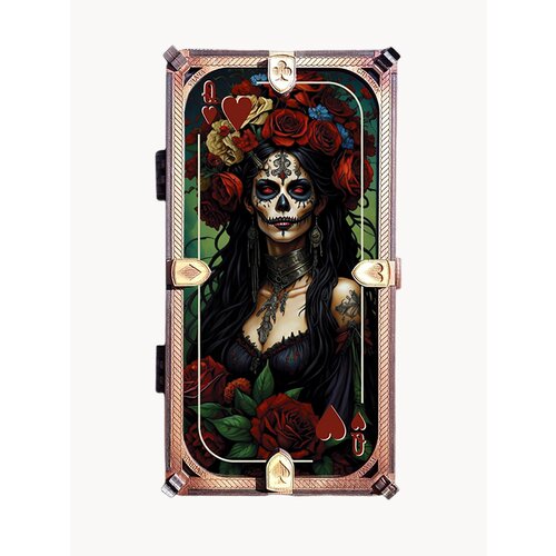 Нарды малые "Дама черви" выполнены в стильном дизайне, который придется по вкусу любителям классики. На доске изображены символы масти "Дама черви", что придает ей особый шарм и уникальность.