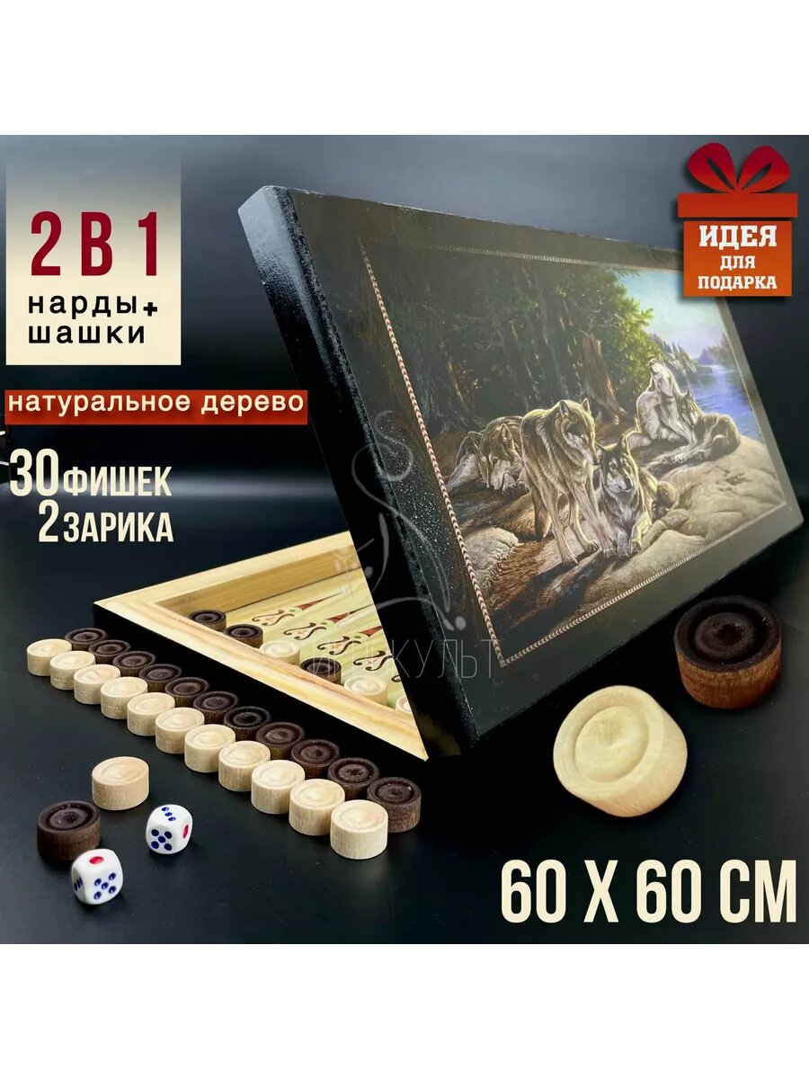 Нарды доступны в нескольких вариантах дизайна, в том числе с изображением льва, волка, корабля, герба, орла, медведя, охоты, восточного узора. Благодаря стильному дизайну, большие нарды 60 см могут быть удачным подарком что принесут много радости и удовольствия при игре и станут прекрасным подарком для любителей интеллектуальных спортивных игр, как для мужчин, так и для женщин. Независимо от повода и пола – в дорогу, на День рождения, Новый год, 23 февраля, 8 марта, папе, дедушке, брату, коллеге, другу, сыну, подарочный набор 2в1 с волком, львом и орлом наверняка станет хитом среди любителей настольных игр и всегда будут приятным сюрпризом!