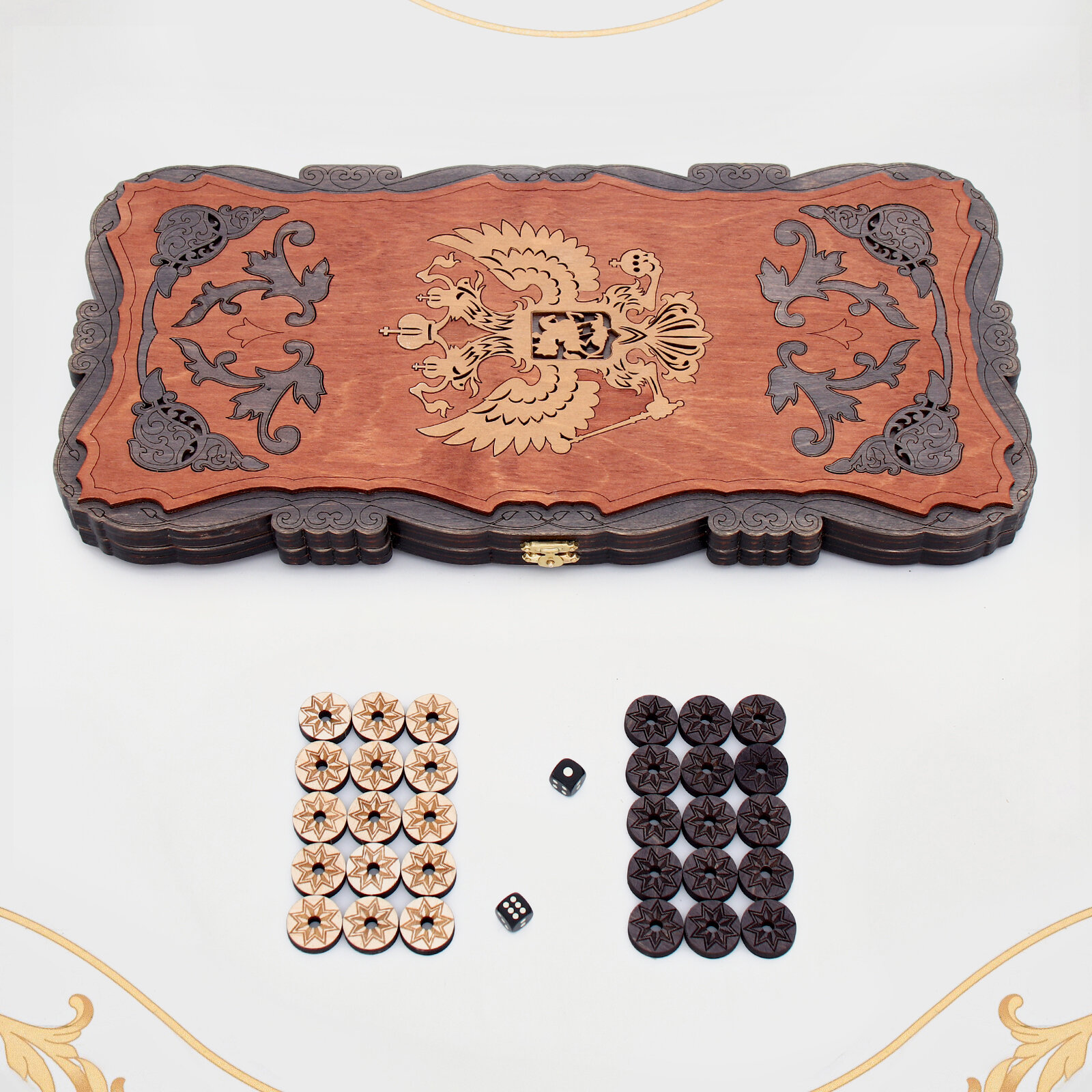 Нарды деревянные большие, резные, настольная игра "Герб", 45 х 45 см