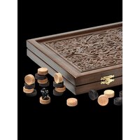Резные деревянные нарды от WoodGames – это не просто настольная игра, это воплощение стиля, традиций и качественного мастерства. Идеальные нарды для тех, кто ценит эстетику, знает толк в качественных играх и хочет по-настоящему удивить своих друзей или близких оригинальным и роскошным подарком. Наслаждайтесь игрой, которая приносит удовольствие не только процессом, но и самим видом доски и фишек, выполненных с такой любовью и вниманием к деталям. Подарочные нарды – это всегда выигрышный выбор для любого праздника, символизирующий уважение и высокую оценку к адресату.