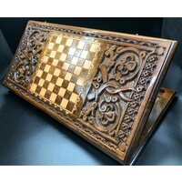 Нарды Деревянные Резные "Кавказский Орнамент" - станут настоящим украшением вашей коллекции настольных игр и неизменным атрибутом для увлекательного досуга. Эти нарды являются превосходным примером традиционного ремесла, и каждый элемент в них продуман и выполнен с особой тщательностью. Их поверхность украшена изысканной резьбой с мотивами кавказского орнамента, что придает им уникальный и элегантный вид, способный украсить любой интерьер. Наличие качественной деревянной поверхности делает игру максимально тактильной и приятной, а размер 50 см обеспечивает удобство и комфорт в игре. Эти нарды станут идеальным подарком для настоящих ценителей и коллекционеров
