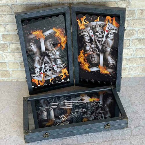 Нарды большие стеклянные "Огненный Туз" - это идеальный выбор для тех, кто ценит качество, стиль и оригинальность. Станут прекрасным подарком для друзей, коллег, родным и близким на любой случай жизни. Эти эксклюзивные нарды добавят изысканности в вашу коллекцию игр.