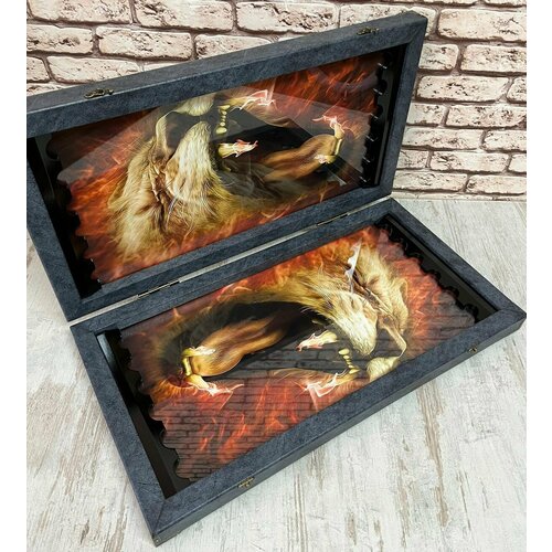 Большие стеклянные нарды "Яростный Лев" имеют превосходный, современный вид. Являются результатом ручной работы мастеров, которые уделяют особое внимание каждой детали. Именно поэтому они не только служат функциональным предметом для игры, но и становятся уникальным элементом интерьера. Отлично подойдут для семьи и компании.