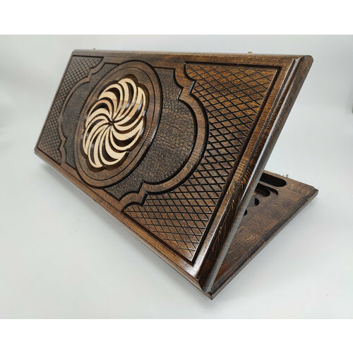 Это поистине великолепный набор из выполненного вручную короба для игры в нарды и шашки, и фишек для нард! Нарды выполнены в авторском стиле ! Доска вырезана из массива бука, шахматная разметка выполнена путём нанесения углублений в массив дерева и вручную затонирована тёмным лаком. Поле для игры в нарды выполнено традиционно - с вырезанными в массиве лузами для фишек и с нанесением контрастной разметки, украшенной посередине витиеватым круговым орнаментом ! Для придания идеального блеска доска покрыта несколькими слоями лака! Внутренняя часть короба рассчитана на хранение фишек для нард и зариков ! Всё в комплекте ! Фишки вырезаны из бука и затонированы ! Это несомненно достойный и завораживающий подарок для ценителя нард! Он подарит огромную радость от преподнесения в дар и от получения во владение ! Производится штучно! В подарок - отличная колода карт!