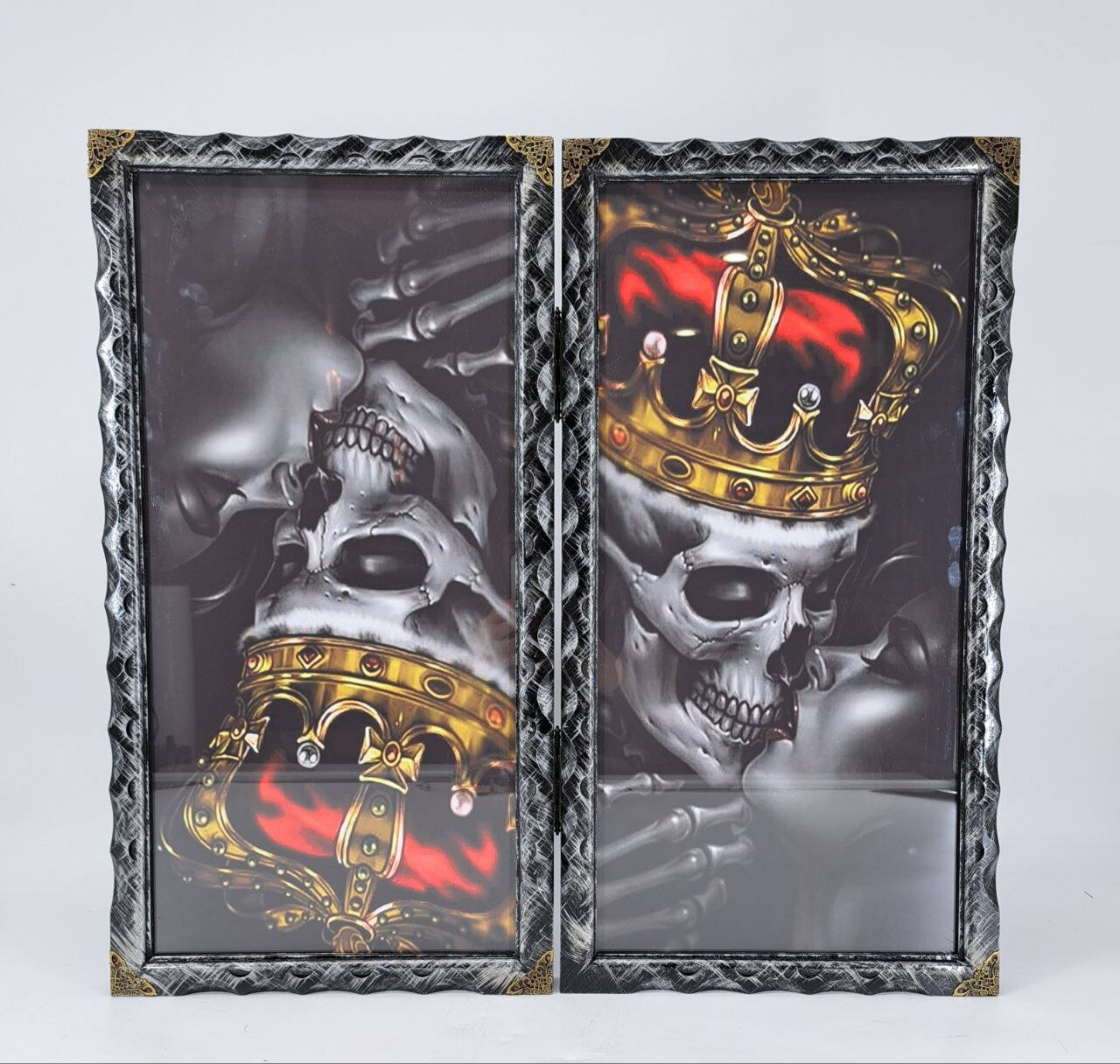 Роскошные, стилизованные нарды, выполнены в стиле традиционных лагерных работ! Деревянная рамка, бар для фишек, игровые ячейки для фишек! Нарды декорированы черной краской с нанесением серебрянных и золотых штрихов, придающих изделию металлический блеск и массивность. Нарды имеют внушительный размер 63*33 см и толщину 9 см в сложенном виде! Сочетание провокационных рисунков на обложках и внутри, придают нардам притягательный, зловещий оттенок! Подарите имениннику эти нарды и вы получите незабываемый восторг в глазах нового владельца этих роскошных нард!