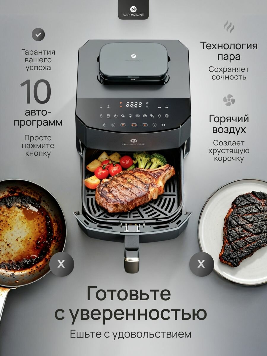 Купить NARRAZIONE Аэрогриль ST-ZE7203 7л с функцией пара и самоочистки, аэрогриль электрический 10 режимов, 1800ВТ с доставкой по всей России. NARRAZIONE Аэрогриль ST-ZE7203 7л с функцией пара и самоочистки, аэрогриль электрический 10 режимов, 1800ВТ: сравнение цен, характеристики, фото, актуальное наличие и цены.