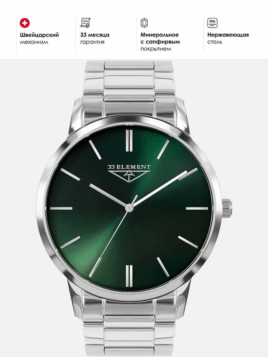 Наручные часы 33 element Basic, зеленый, серебряный: сравнение цен, характеристики, фото, актуальное наличие и цены.