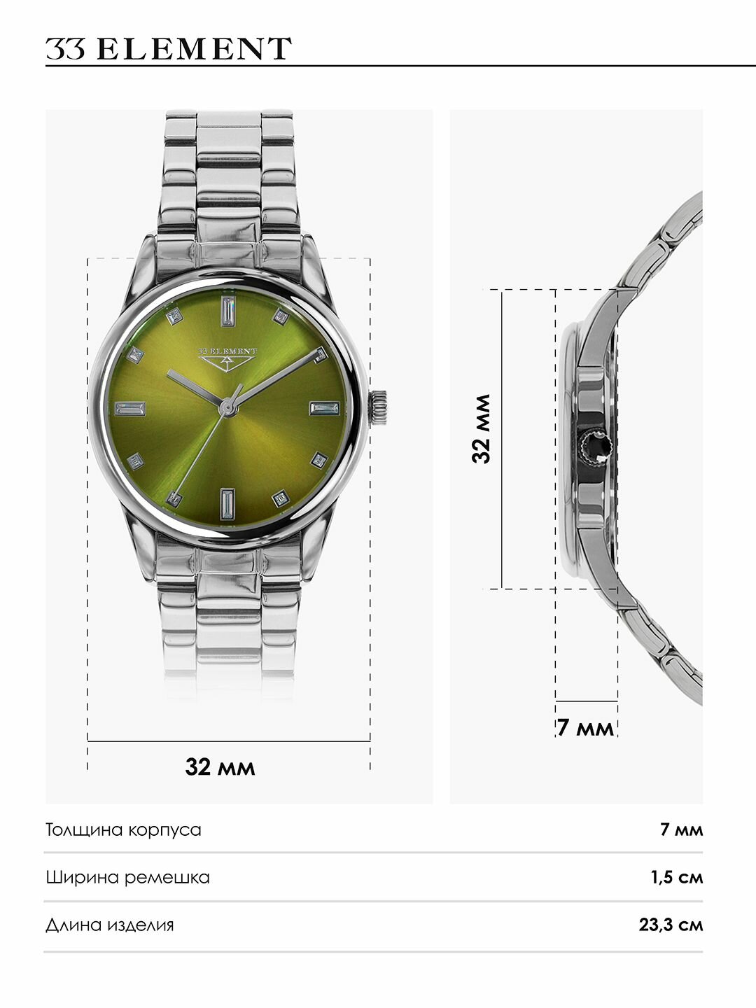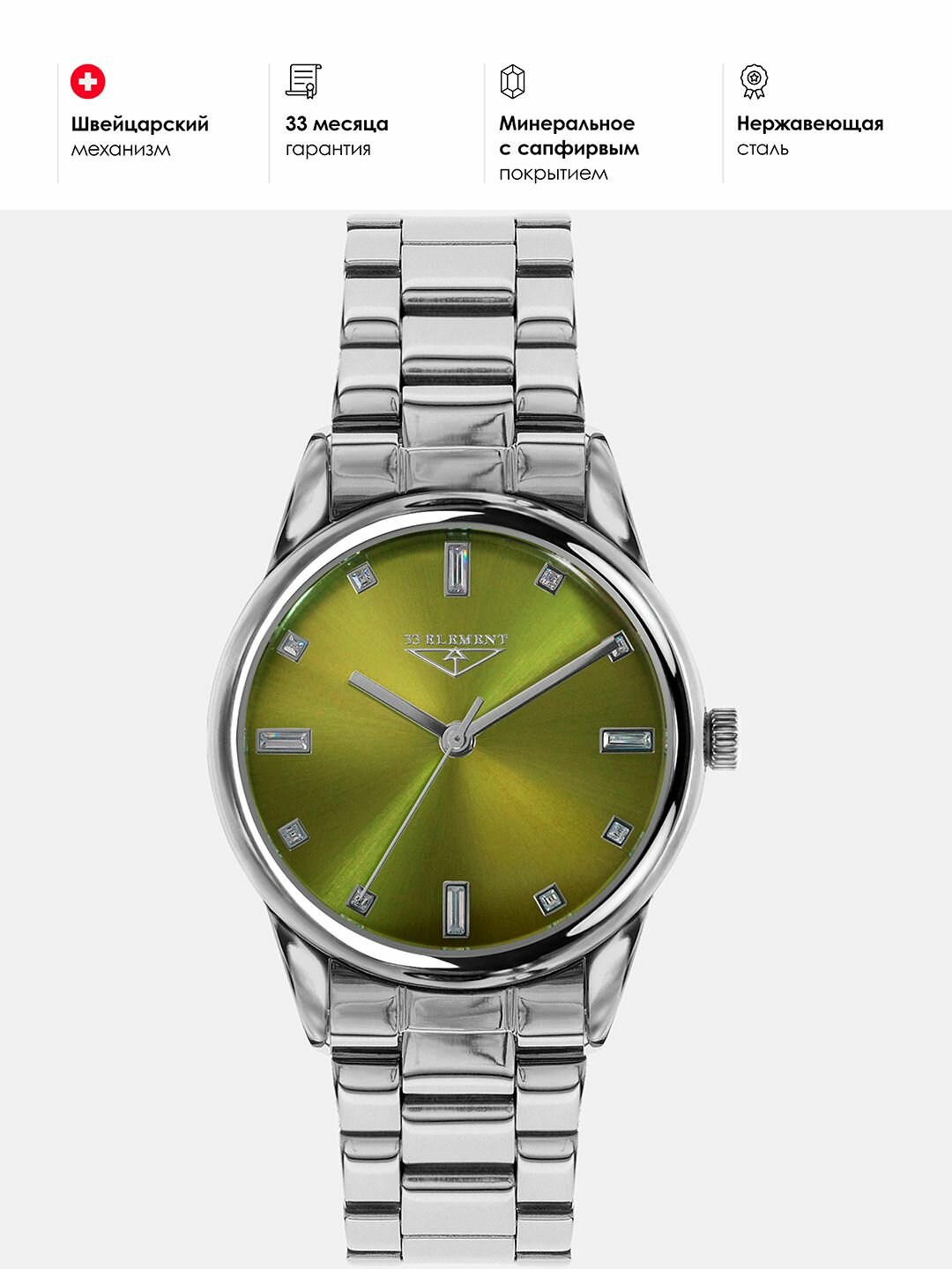 Наручные часы 33 element, серебряный, зеленый: сравнение цен, характеристики, фото, актуальное наличие и цены.