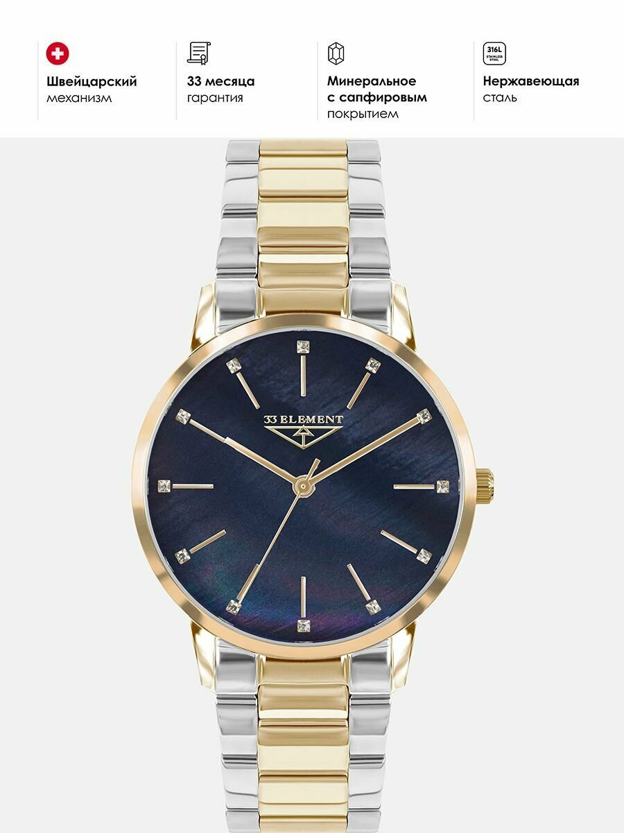 Наручные часы 33 element, золотой, серебряный, синий