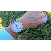 пол: женский, циферблат: аналоговый (стрелки), материал браслета: кожа, особенности: водонепроницаемые, подсветка стрелок
