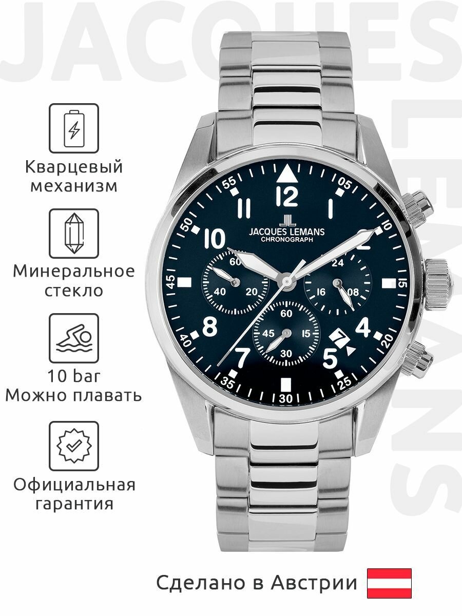 Наручные часы JACQUES LEMANS Sport, синий/серебряный: сравнение цен, характеристики, фото, актуальное наличие и цены.