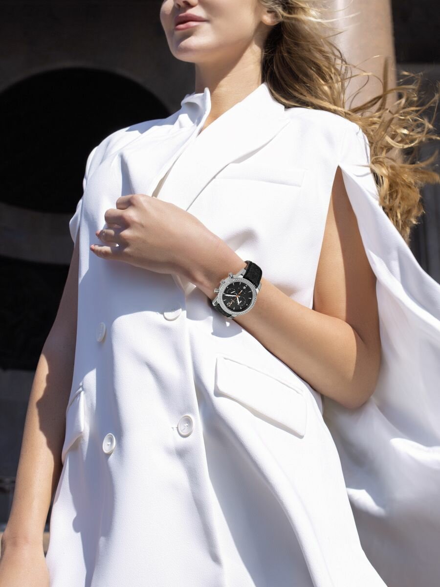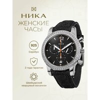 Наручные часы НИКА, серебро, фианит, черный