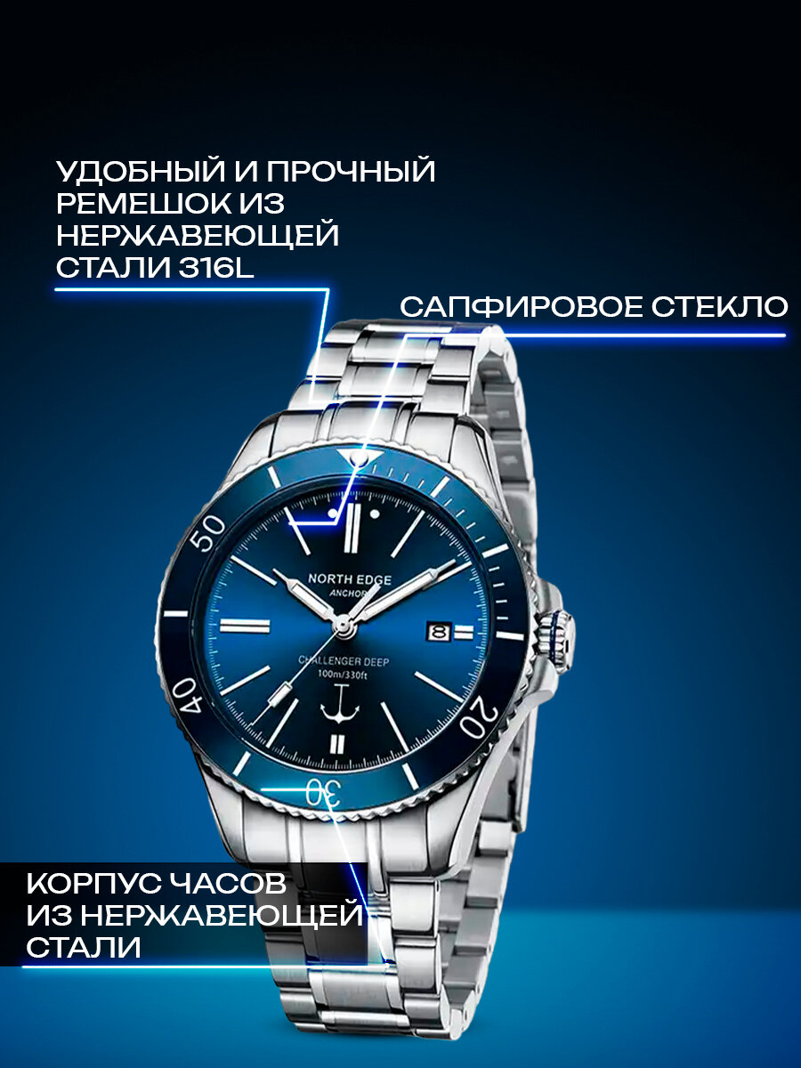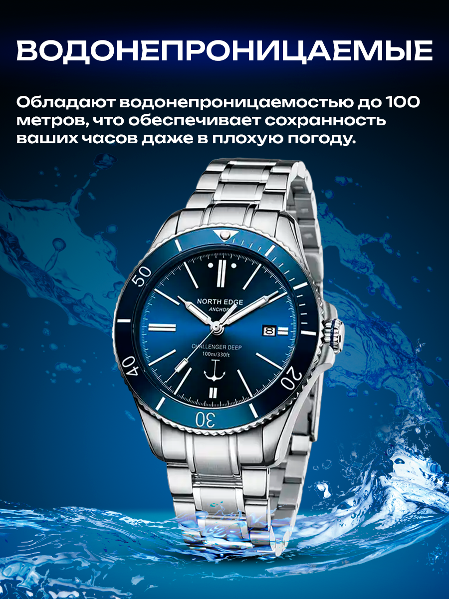 | Особенности | водонепроницаемые, поворотный безель, противоударные |