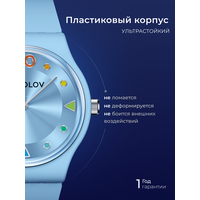 | Дополнительная информация | часы женские, корпус голубой пластик, японский механизм с функциями часы, минуты, секунды, стекло пластиковое, ремешок из силикона, |