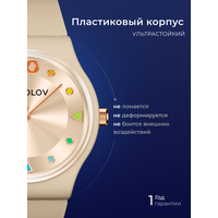 | Дополнительная информация | часы женские, корпус бежевый пластик, японский механизм с функциями часы, минуты, секунды, стекло пластиковое, ремешок из силикона, |