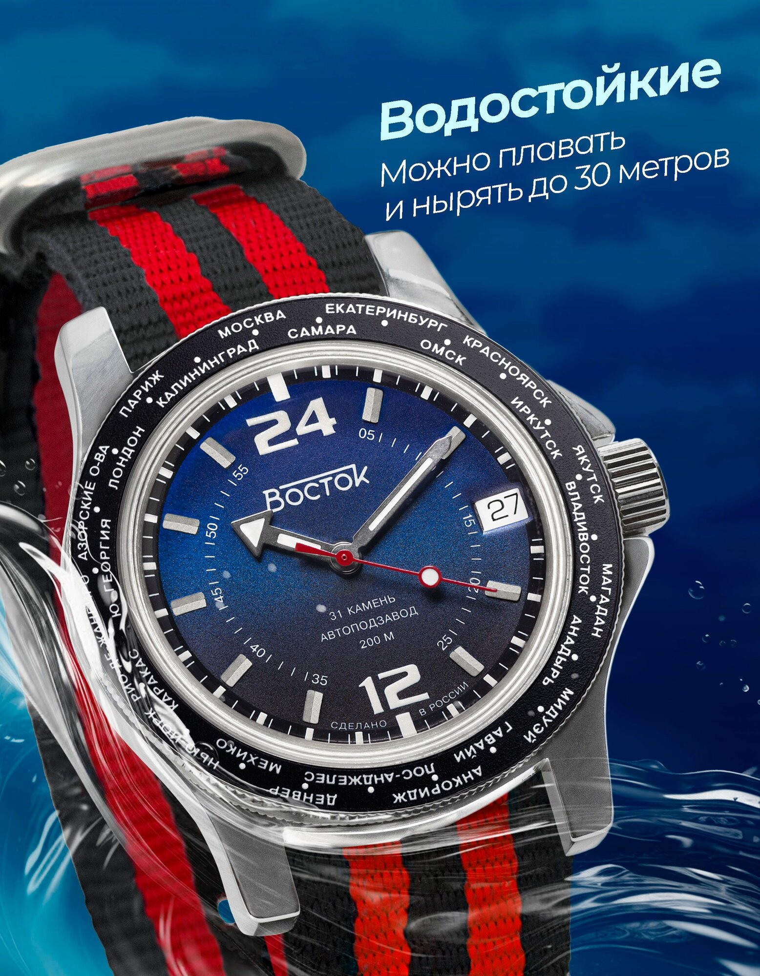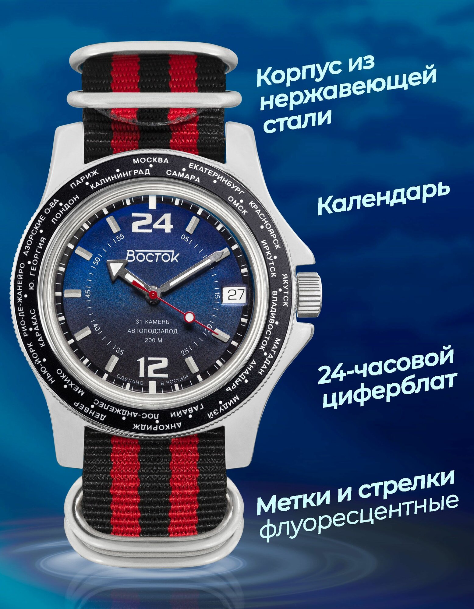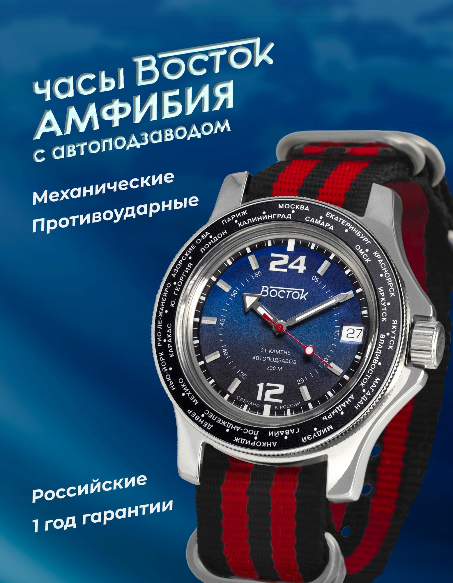 Наручные часы Восток Амфибия, нейлон черно-красный: сравнение цен, характеристики, фото, актуальное наличие и цены.