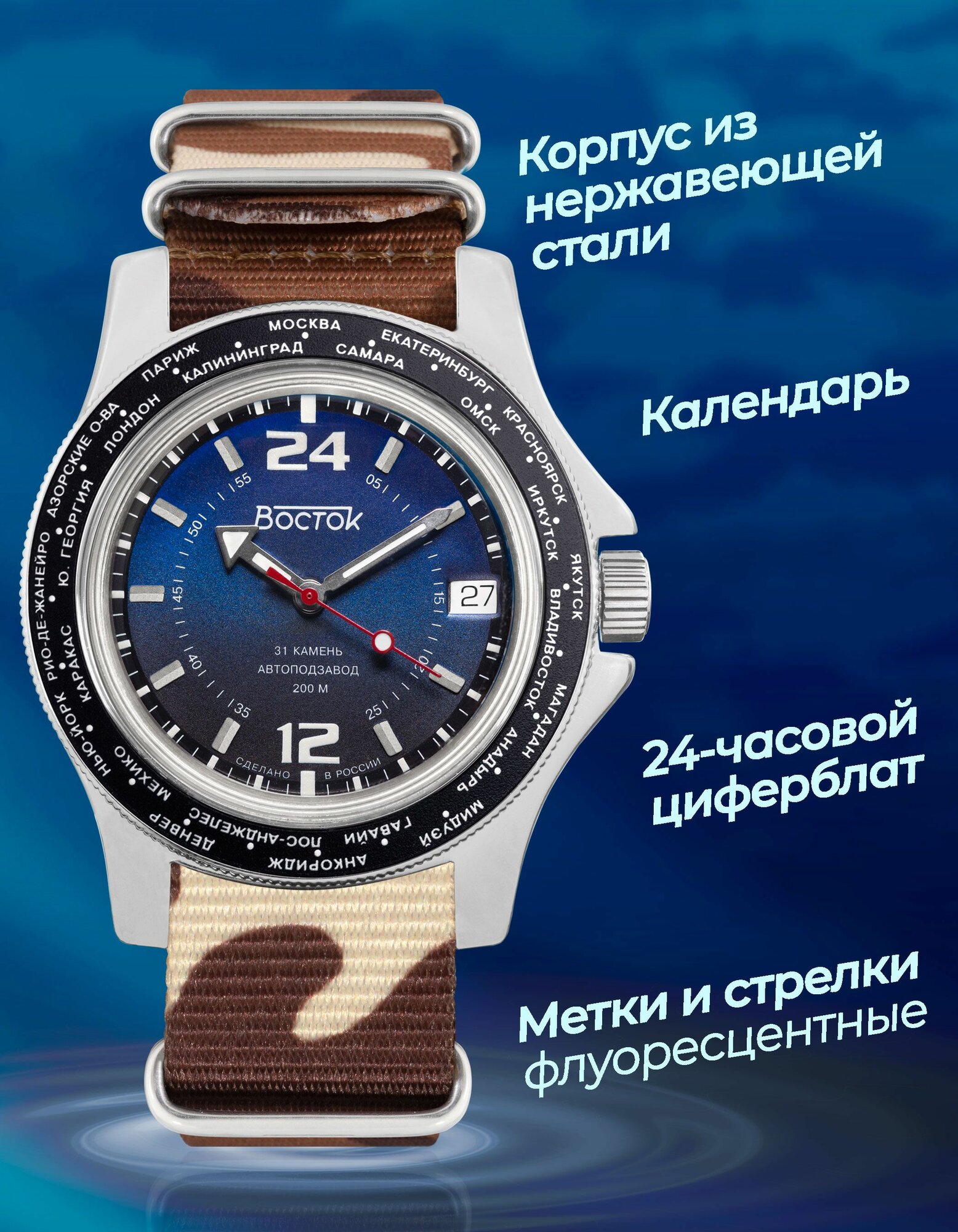 Купить Наручные часы Восток Амфибия, нейлон камо пустыня с доставкой по всей России. Наручные часы Восток Амфибия, нейлон камо пустыня: сравнение цен, характеристики, фото, актуальное наличие и цены.